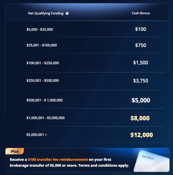 4. Is the $750 cash bonus on 25K transfer only for existing accounts? I currently don’t have a WeBull account.