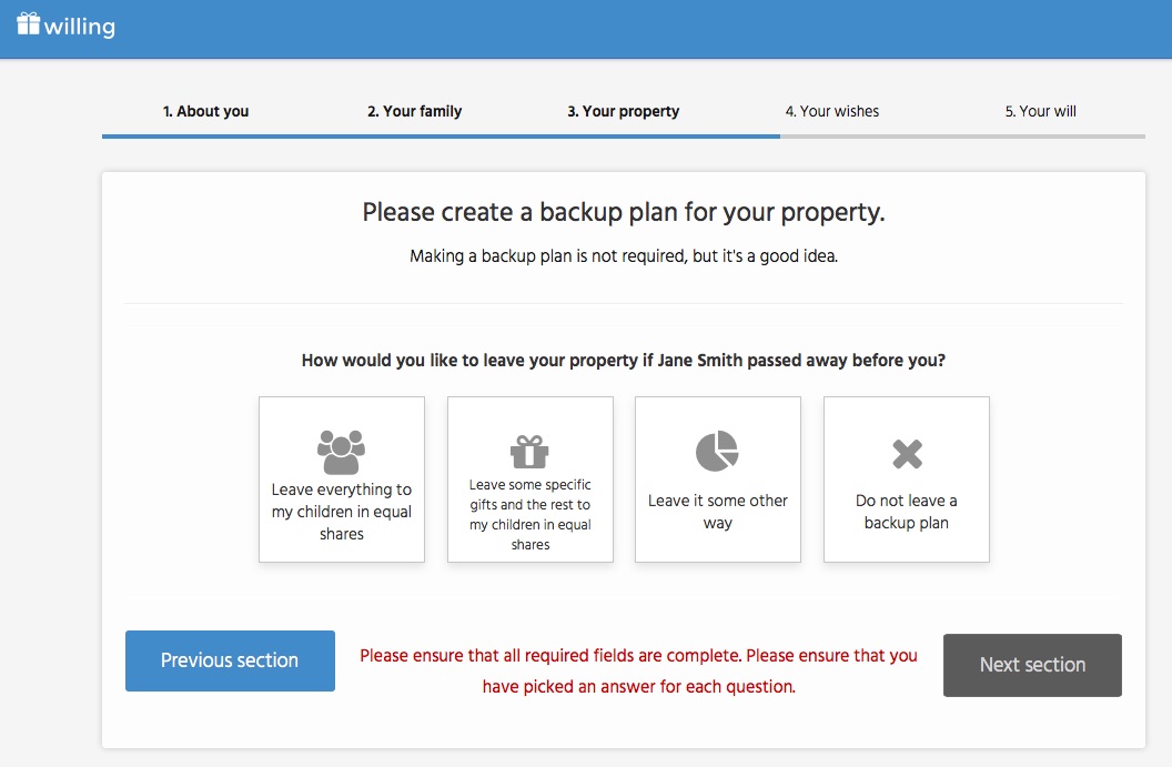 I just went on your website and completed most of the requirements to set up a will. I did not complete the medical provisions, the home protection or the Legal protection sections which would require a cost upgrade. I expect I would do the upgrade for additional costs but I am unsure of “Willing’s” expertise and I would like to know how the company rates compared to others providing this service. I want to be sure I have the best company working for me.